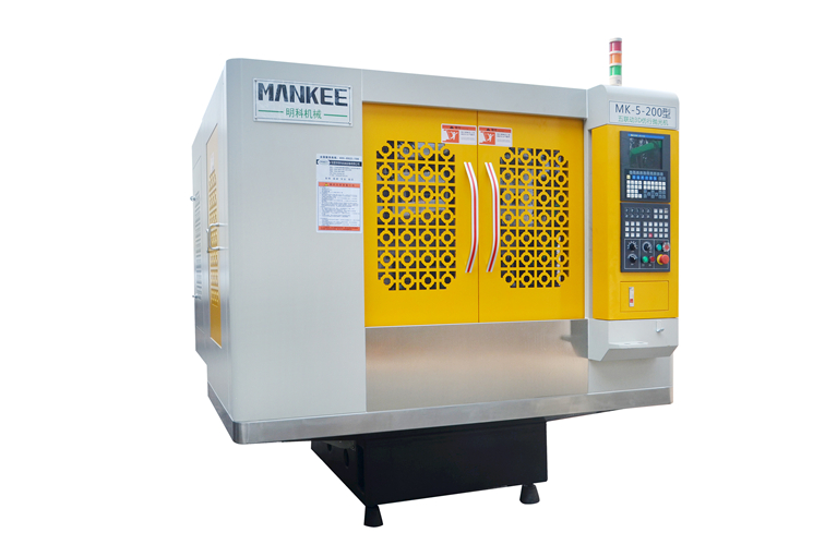 整機采用CNC控制系統,五軸聯動仿形運動,高精度插補,高速響應;高精度大功率伺服馬達驅動;驅動產品按自身輪廓作仿形運動;同時(電動旋轉震動拋光輪粘砂紙)砂紙對產品進行拋光打磨作業;經過循環加工后,使產品拋光效果達到標準要求。